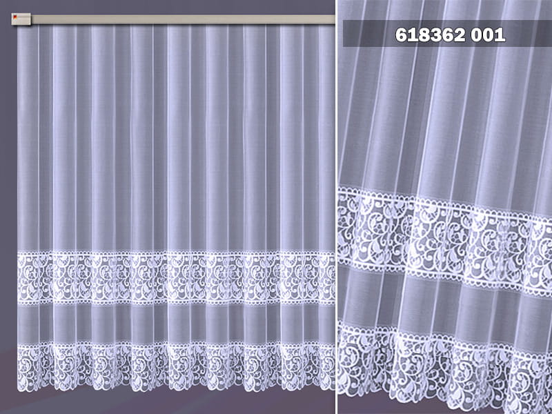 Firanka żakardowa wykonana z wysokiej jakości przędzy nabłyszczanej.