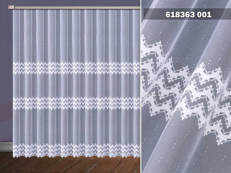 Firanka żakardowa wykonana z wysokiej jakości przędzy nabłyszczanej.