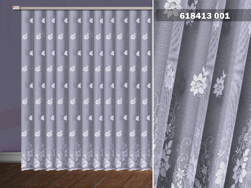 Firanka żakardowa wykonana z wysokiej jakości przędzy nabłyszczanej.