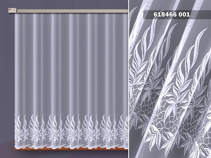 Firanka żakardowa wykonana z wysokiej jakości przędzy nabłyszczanej.