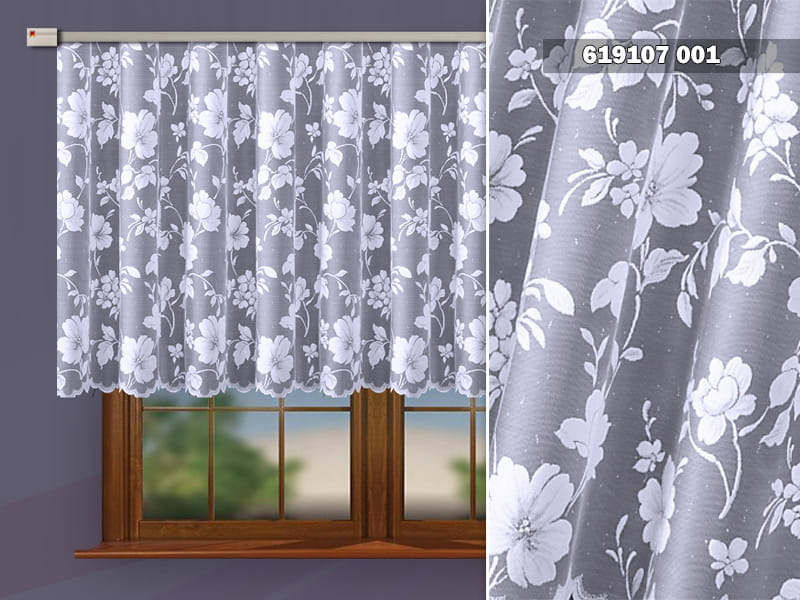 Firanka żakardowa wykonana z wysokiej jakości przędzy nabłyszczanej.