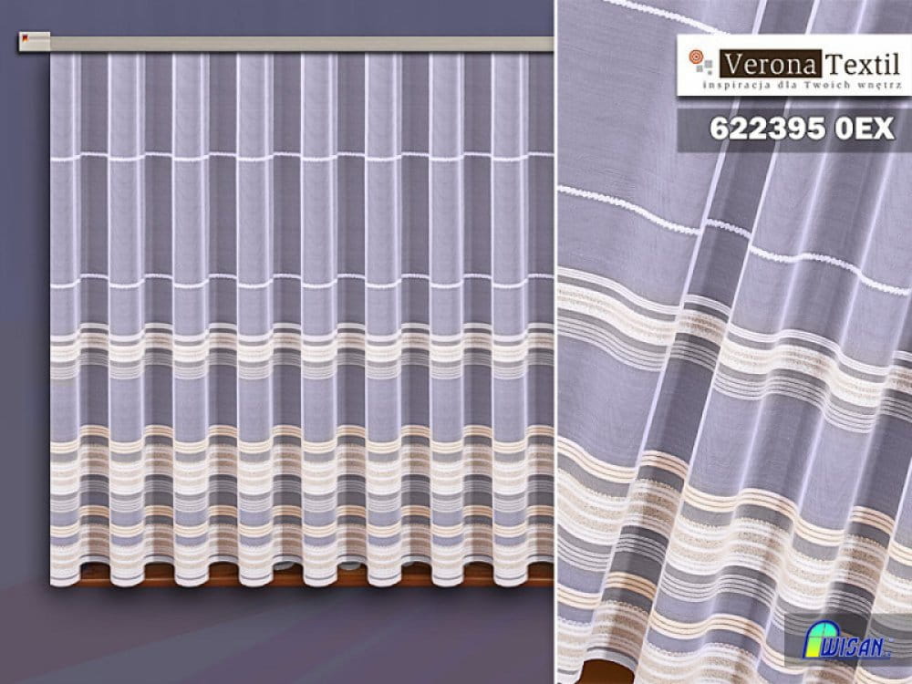 Firanka żakardowa wykonana z wysokiej jakości przędzy nabłyszczanej.
