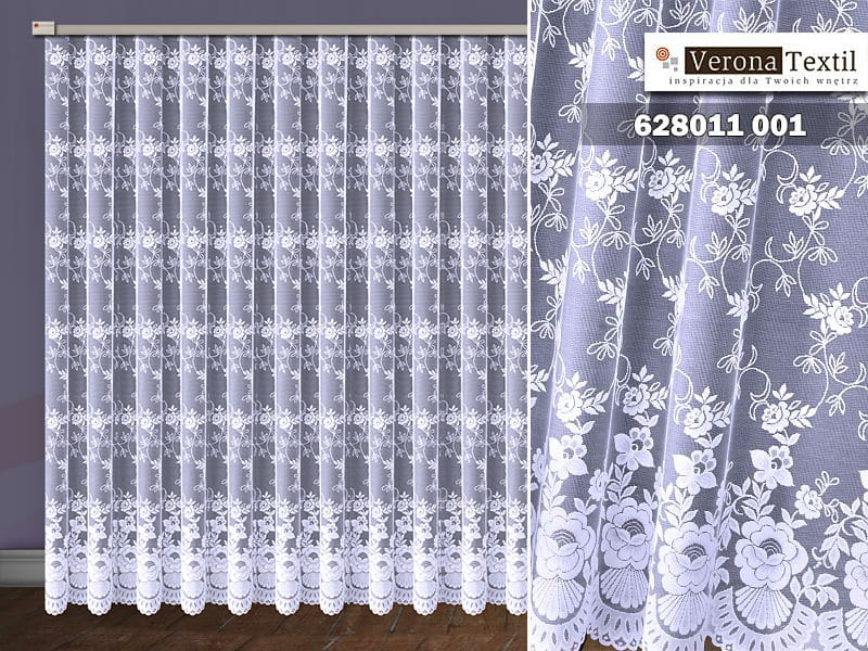 Firanka żakardowa wykonana z wysokiej jakości przędzy nabłyszczanej.