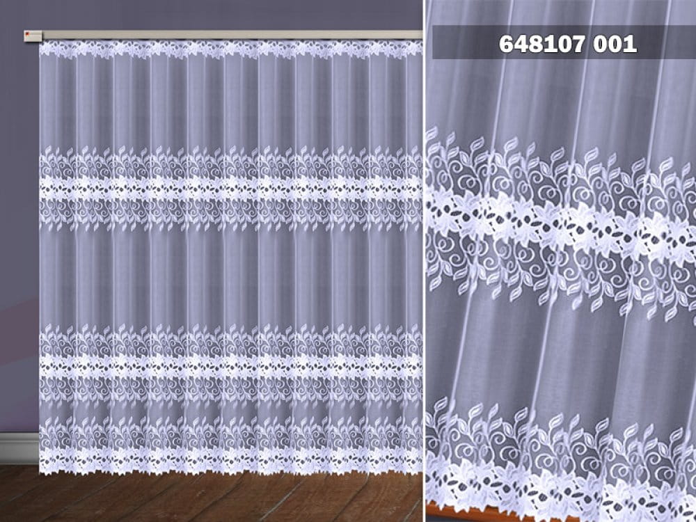 Firanka żakardowa wykonana z wysokiej jakości przędzy nabłyszczanej.