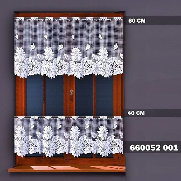 Firanka żakardowa wykonana z wysokiej jakości przędzy nabłyszczanej.