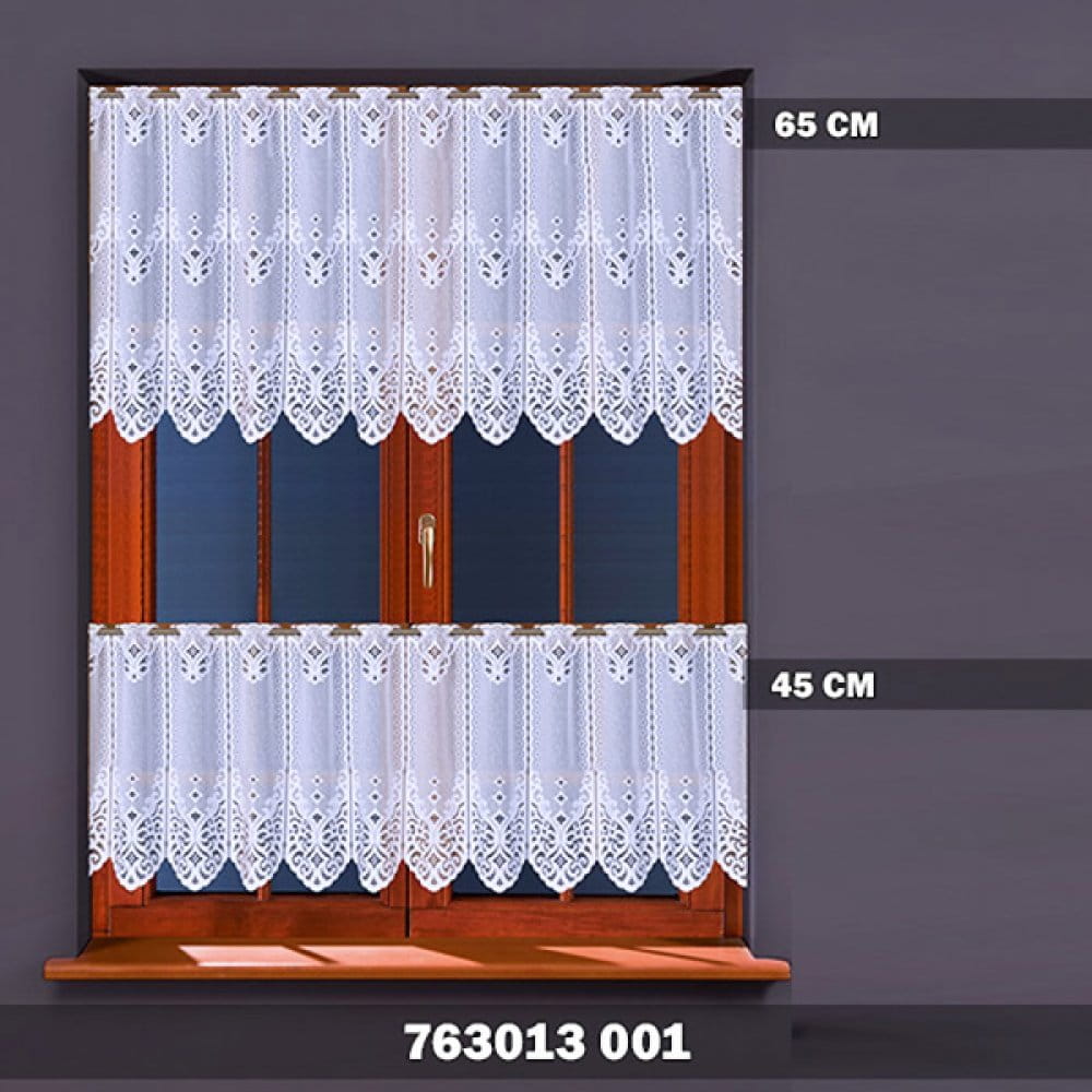 Firanka żakardowa wykonana z wysokiej jakości przędzy nabłyszczanej.