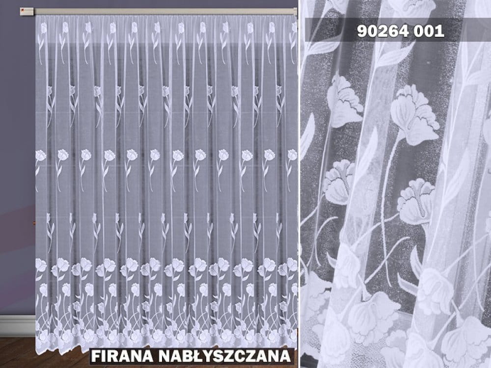Firanka żakardowa wykonana z wysokiej jakości przędzy nabłyszczanej.