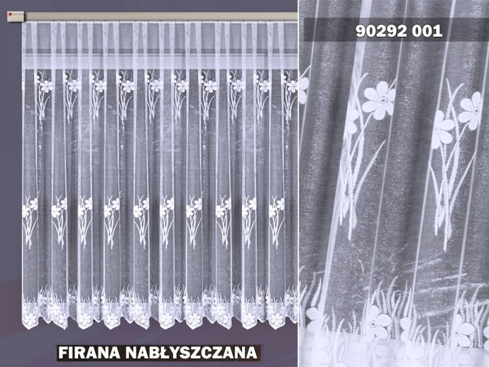 Firanka żakardowa wykonana z wysokiej jakości przędzy nabłyszczanej.