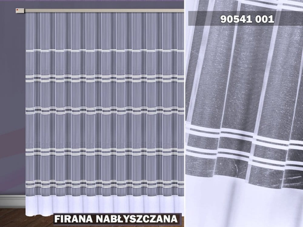 Firanka żakardowa wykonana z wysokiej jakości przędzy nabłyszczanej.