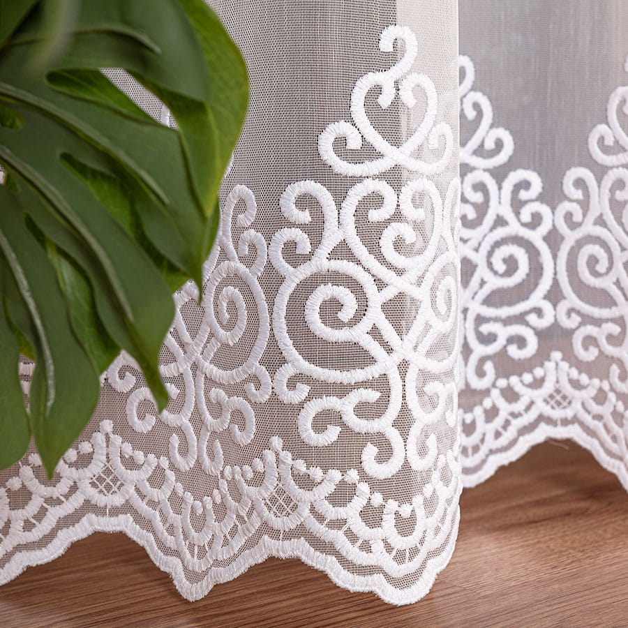 Firanka haftowana ze wzorem na samym dole,