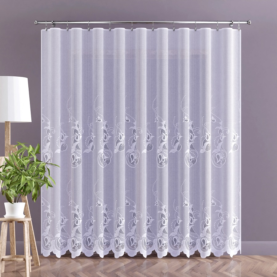 Firana wykonana z wysokiej jakości przędzy żakardowej.