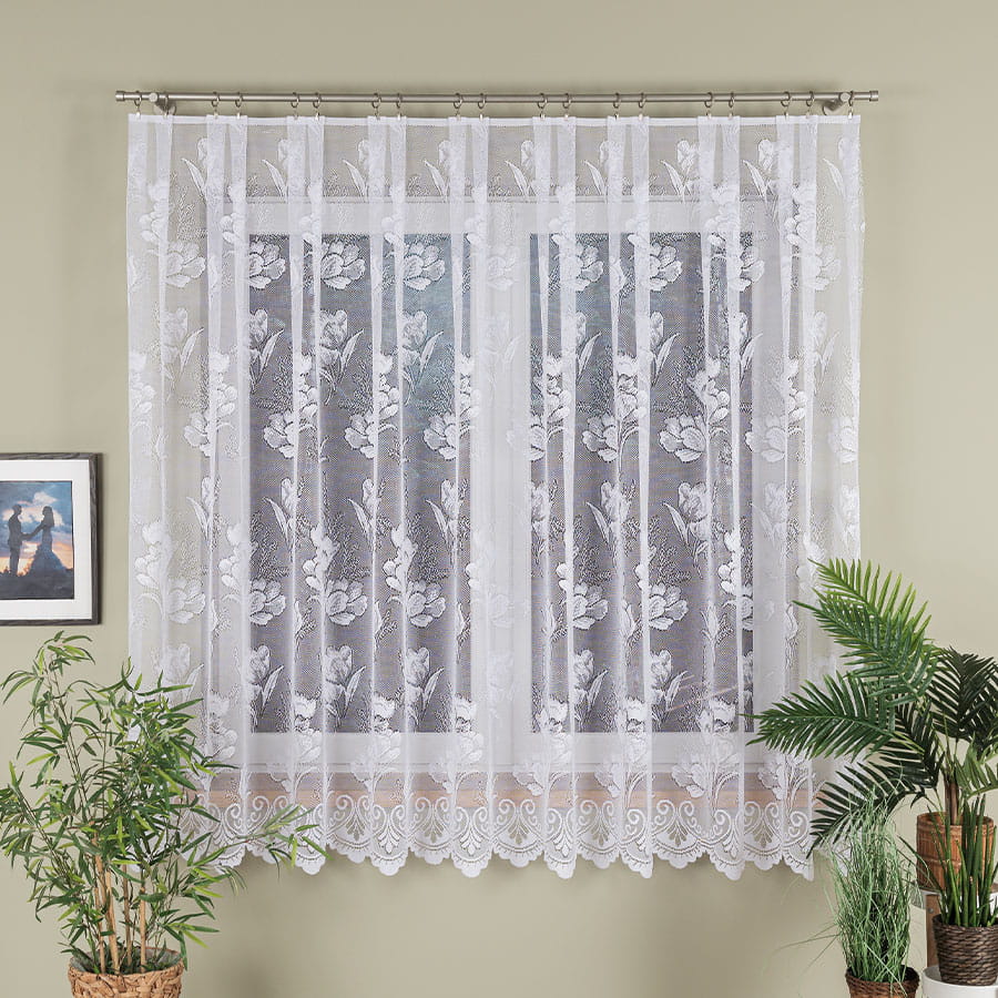 Firana wykonana z wysokiej jakości przędzy żakardowej.