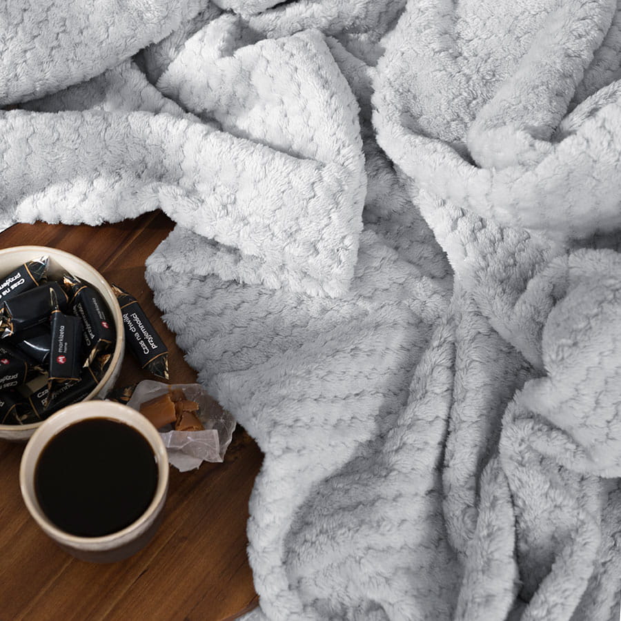 Puszysty i miły w dotyku koc w kolorze szarym. Może służyć zarówno jako okrycie, jak i narzuta na łóżko. Doskonale uzupełnia się z poszewką LUGO w tym samym kolorze.
