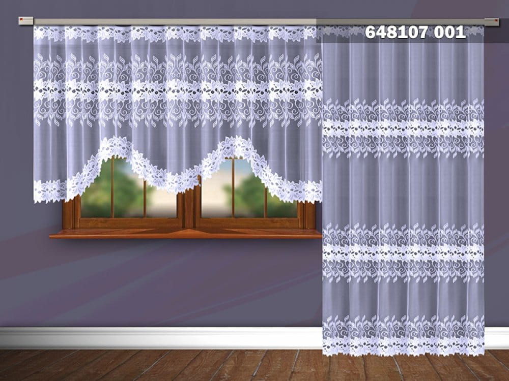 Firana długa posiada obszyte boki, a do łuku brzeg fabryczny,