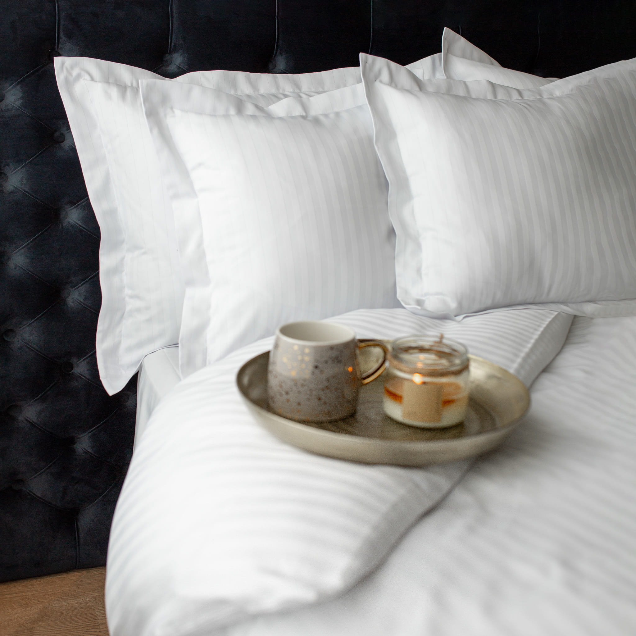 Luksusowa pościel uszyta z materiału bawełnianego o splocie satynowym.