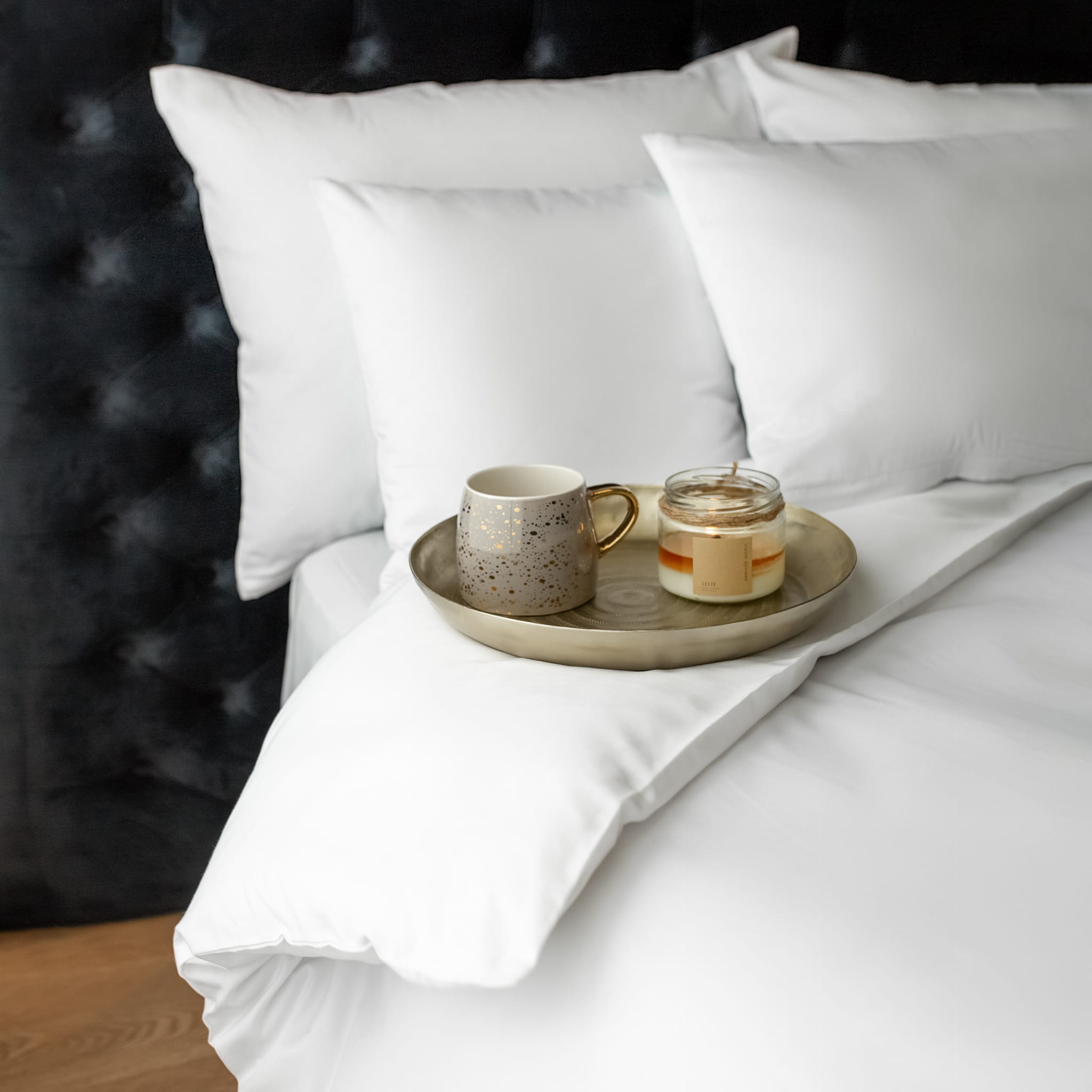 Luksusowa pościel uszyta z materiału bawełnianego o splocie satynowym.