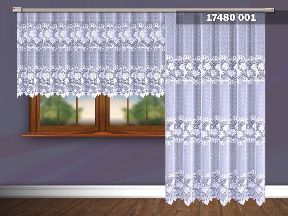 Firanka żakardowa wykonana z wysokiej jakości przędzy nabłyszczanej.