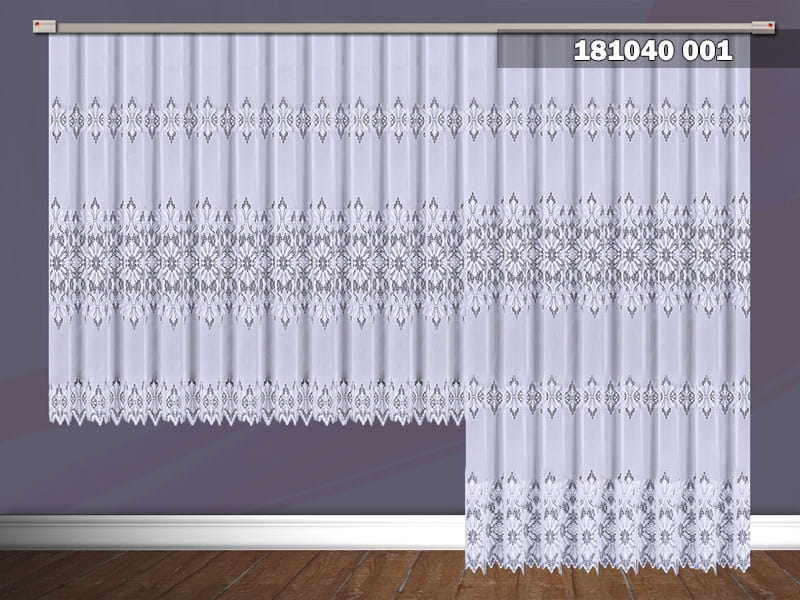 Firanka żakardowa wykonana z wysokiej jakości przędzy nabłyszczanej.