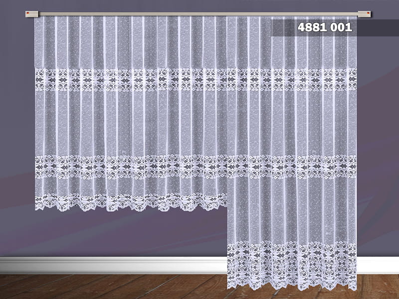 Firanka żakardowa wykonana z wysokiej jakości przędzy nabłyszczanej.