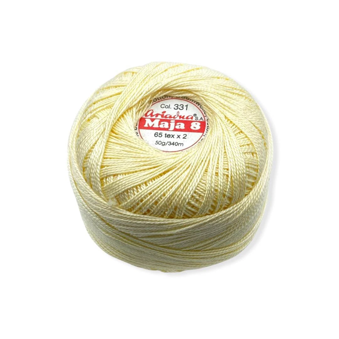 Kordonek Maja 8 polskiego producenta Ariadna. Wykonany z długowłóknistej bawełny czesanej, opalany i podwójnie merceryzowany kordonek bardzo dobrej jakości o wadze 50g.