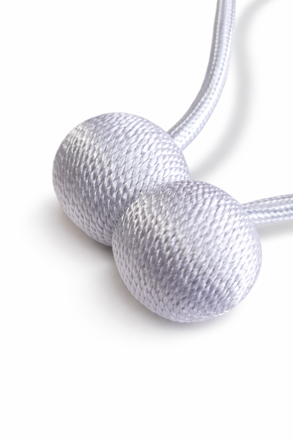 z takim samym symetrycznym zapięciem na obu końcach usztywnionego sznurka.