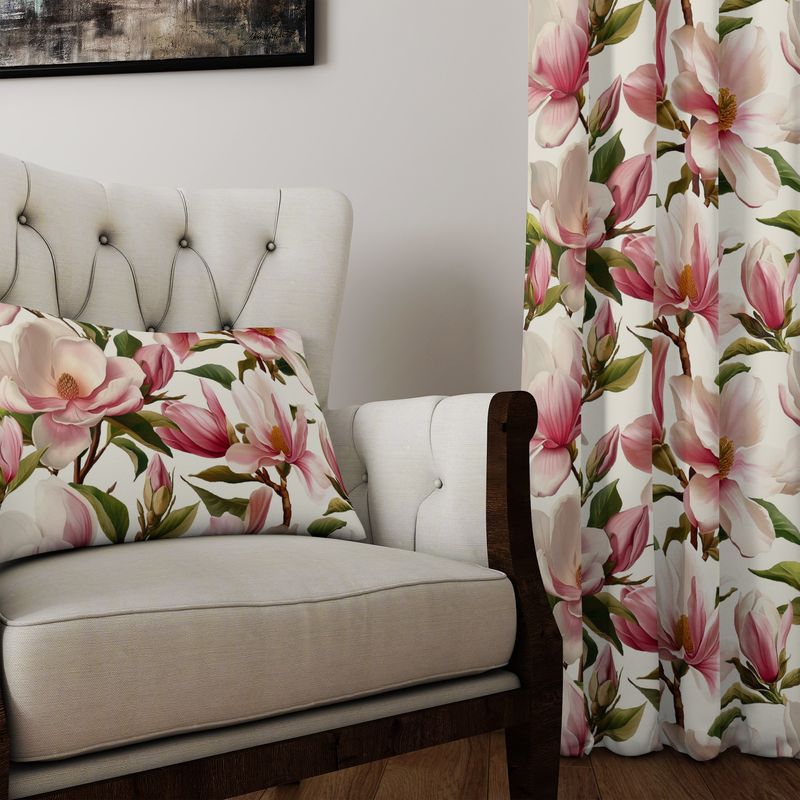Tkanina  dobrze się układa. Idealnie nadaje się na zasłony i lambrekiny.