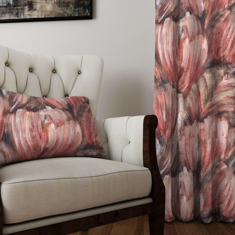 Tkanina dobrze się układa. Idealnie nadaje się na zasłony i lambrekiny.