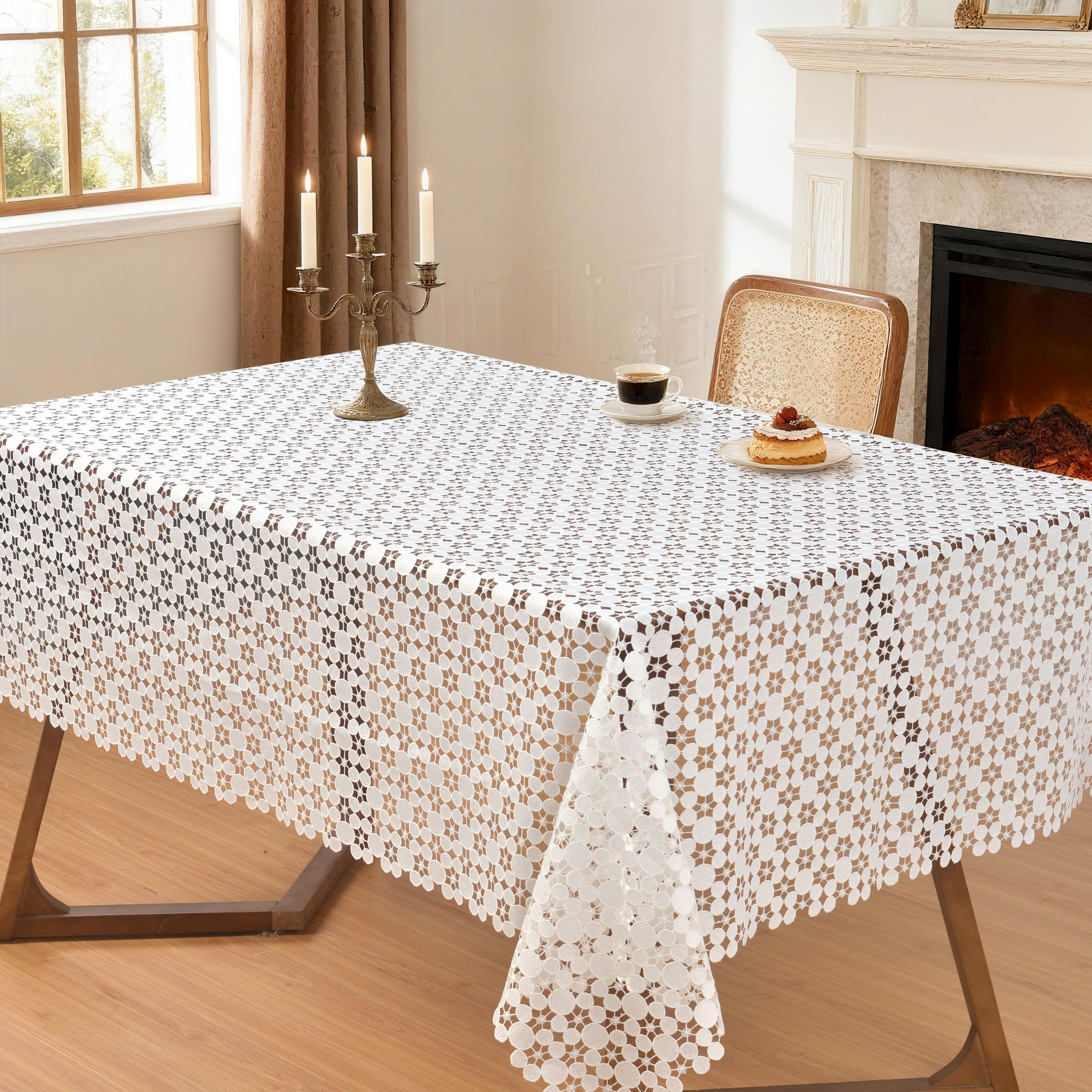 Przedstawiamy elegancki obrus wykonany z wysokiej jakości gipiury, który doda szyku i uroku każdemu wnętrzu. Ten starannie zaprojektowany dodatek do dekoracji stołu charakteryzuje się klasycznym motywem , który idealnie komponuje się z różnorodnymi stylami , od tradycyjnych po nowoczesne. Wyrafinowany wzór koronki zapewnia przepiękne prześwity, tworząc subtelną grę światła i cienia na powierzchni stołu.