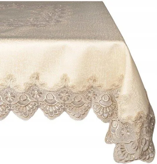 Przedmiotem sprzedaży jest elegancki obrus plamoodporny wykończony gipiurą.