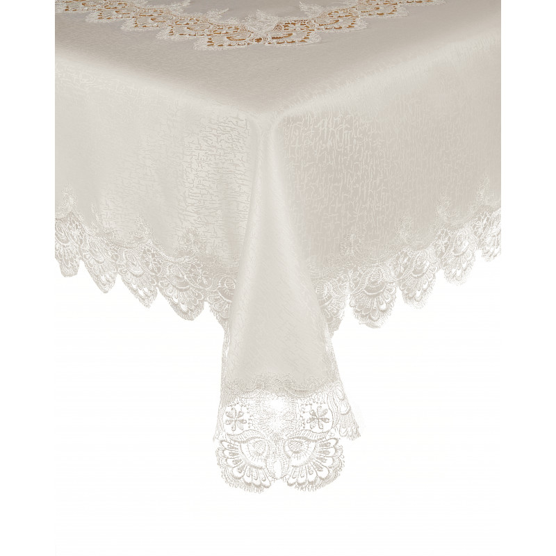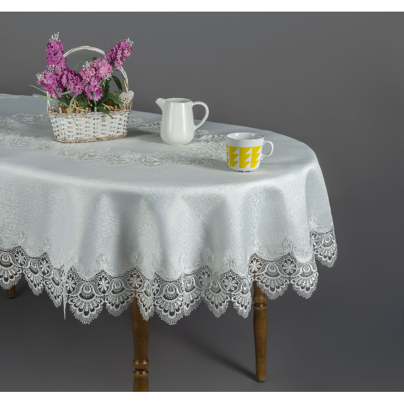 Przedmiotem sprzedaży jest elegancki obrus plamoodporny wykończony gipiurą.