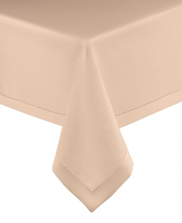 Klasyczny obrus w kolorze beżowym dodaje lekkości i elegancji każdemu nakryciu stołu, sprawiając, że nawet codzienny posiłek zyskuje wyjątkowy charakter.
