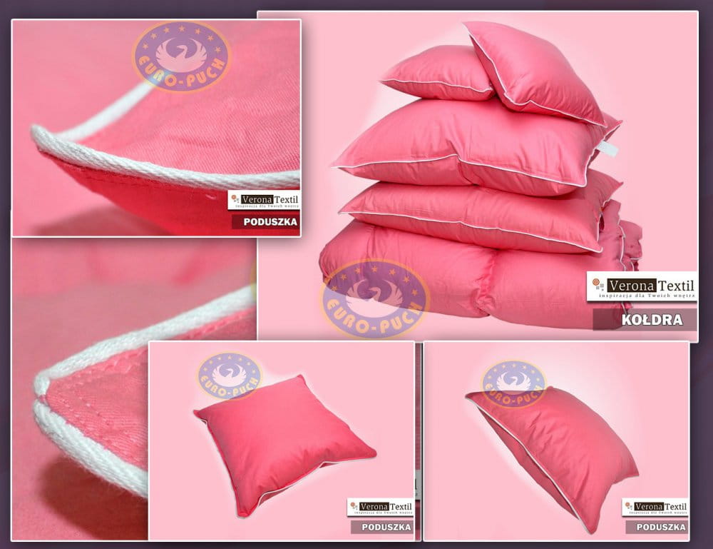 Obszyta jest białą bizą-dekoracyjną wypustką,która dodatkowo uszczelnia jej brzegi,co zapobiega przedostaniu się pierza na zewnątrz.