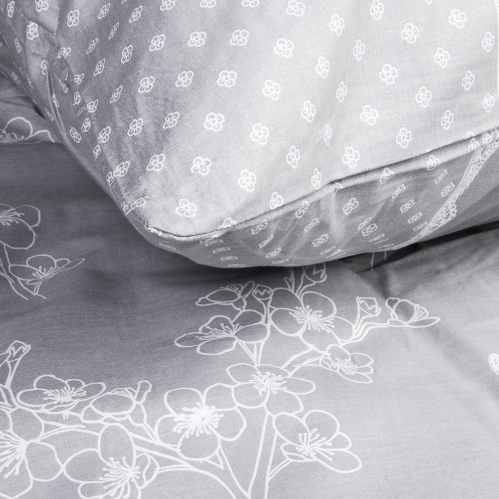 Pościel w delikatnym jasnoszarym kolorze zdobią subtelne motywy kwiatów i motyli, które wprowadzą do wnętrza świeżość i lekkość. Starannie zaprojektowane przez naszych projektantów wzory odzwierciedlają najnowsze trendy, a perfekcyjne wykończenie dodaje całości luksusowego charakteru.