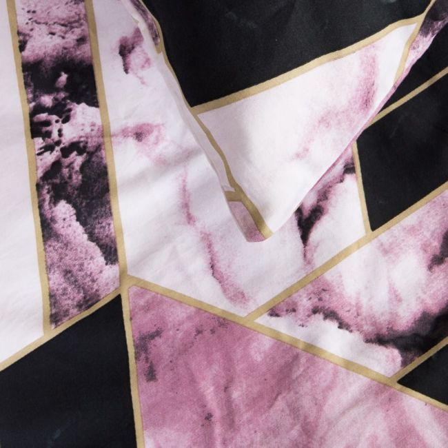 Pościel satyna bawełniana 160x200 czarno różowy geometryczny marmur 1546