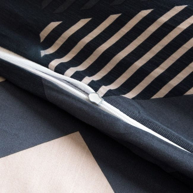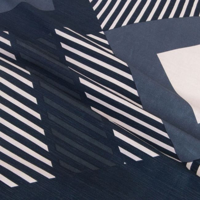 Wzór geometryczny w połączeniu z granatowymi i kremowymi odcieniami doskonale wpisuje się w nowoczesne trendy aranżacyjne. Stonowane barwy sprawiają, że pościel jest uniwersalna, a jednocześnie pełna klasy i stylu.