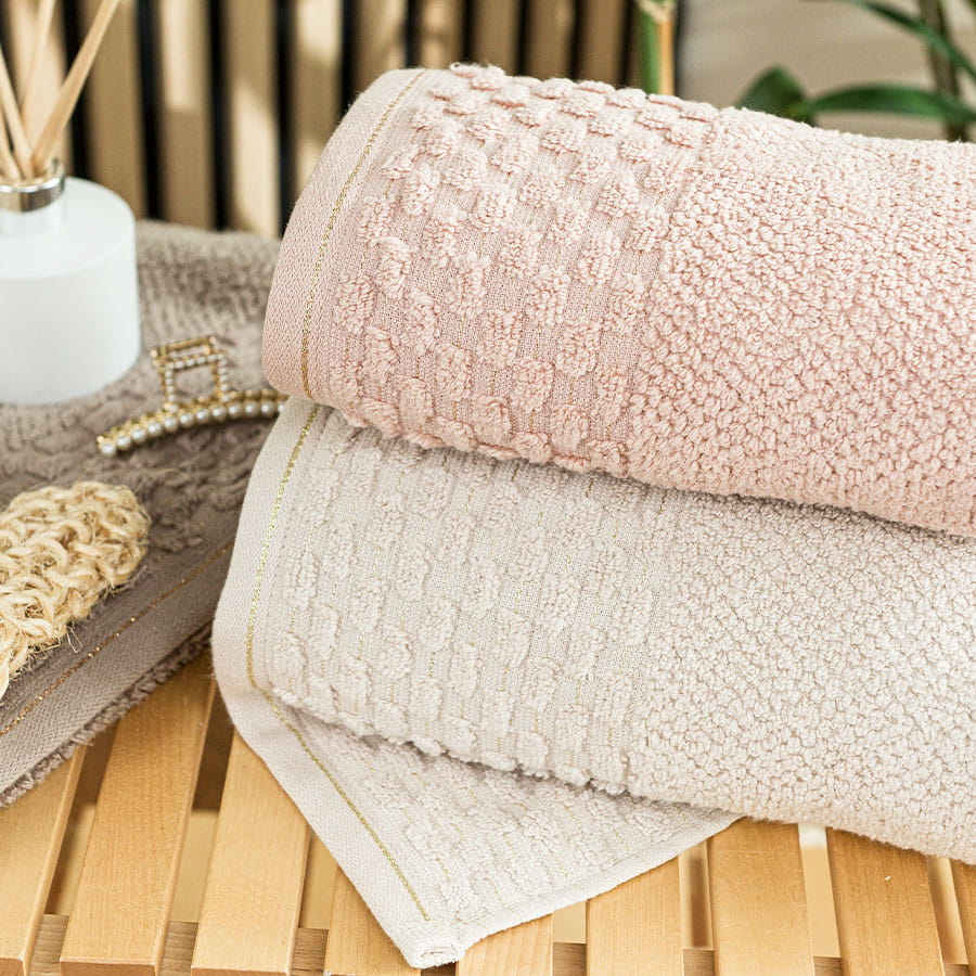 Wyjątkowy ręcznik ze złotym wykończeniem, będzie ozdobą każdej łazienki.
