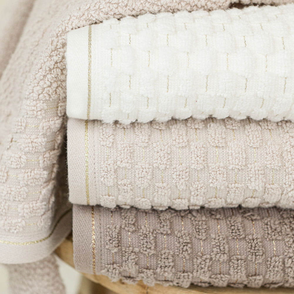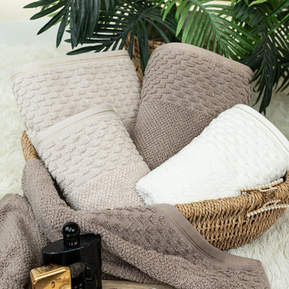 Wyjątkowy ręcznik ze złotym wykończeniem, będzie ozdobą każdej łazienki.