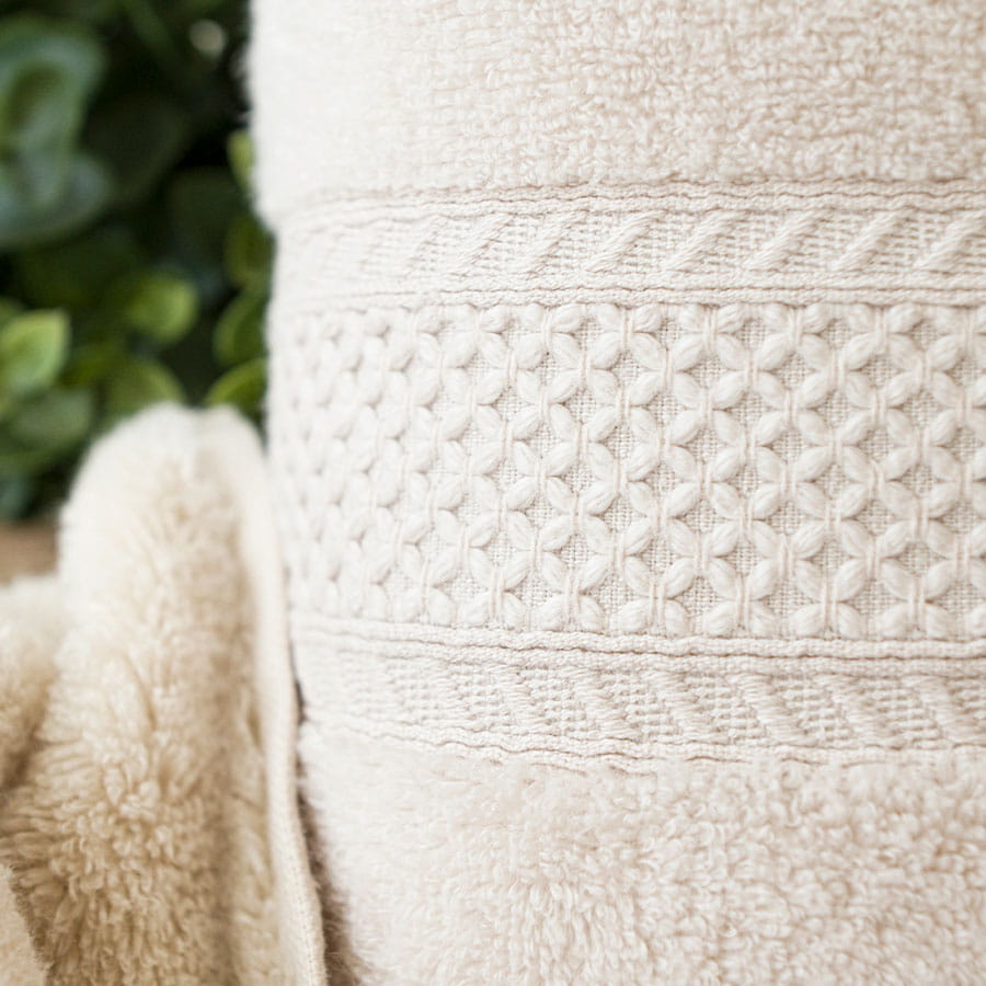 Ręcznik Rodos został wykonany ze 100% bawełny. Jest bardzo miękki i delikatny dla skóry. Dodatkowo wyjątkowo chłonny, a jego uniwersalne kolory z pewnością wpasują się w każdą łazienkę.