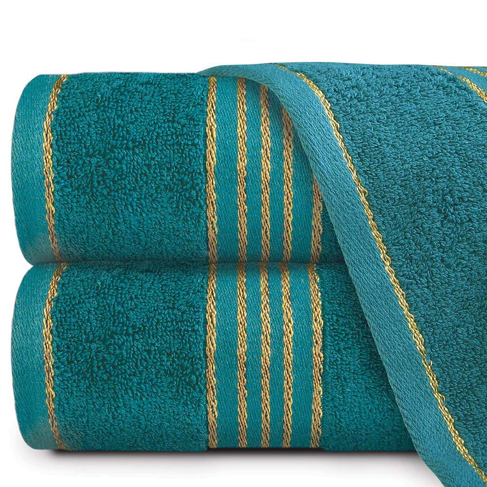Ręcznik TIWANO 50x90 cm bawełniany kolor ciemny turkus z bordiurą w złote paski