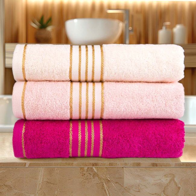 Ręcznik TIWANO 50x90 cm bawełniany kolor fuksja z bordiurą w złote paski