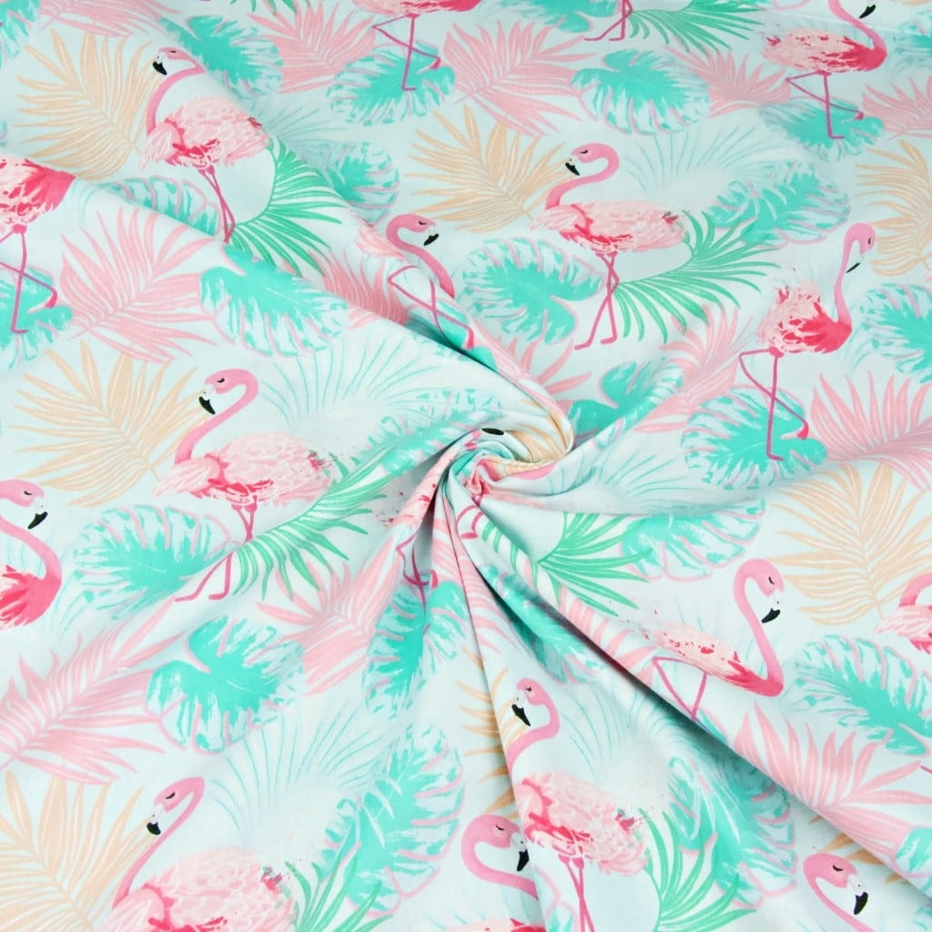 Tkanina bawełniana flamingi pastelowe różowo miętowe