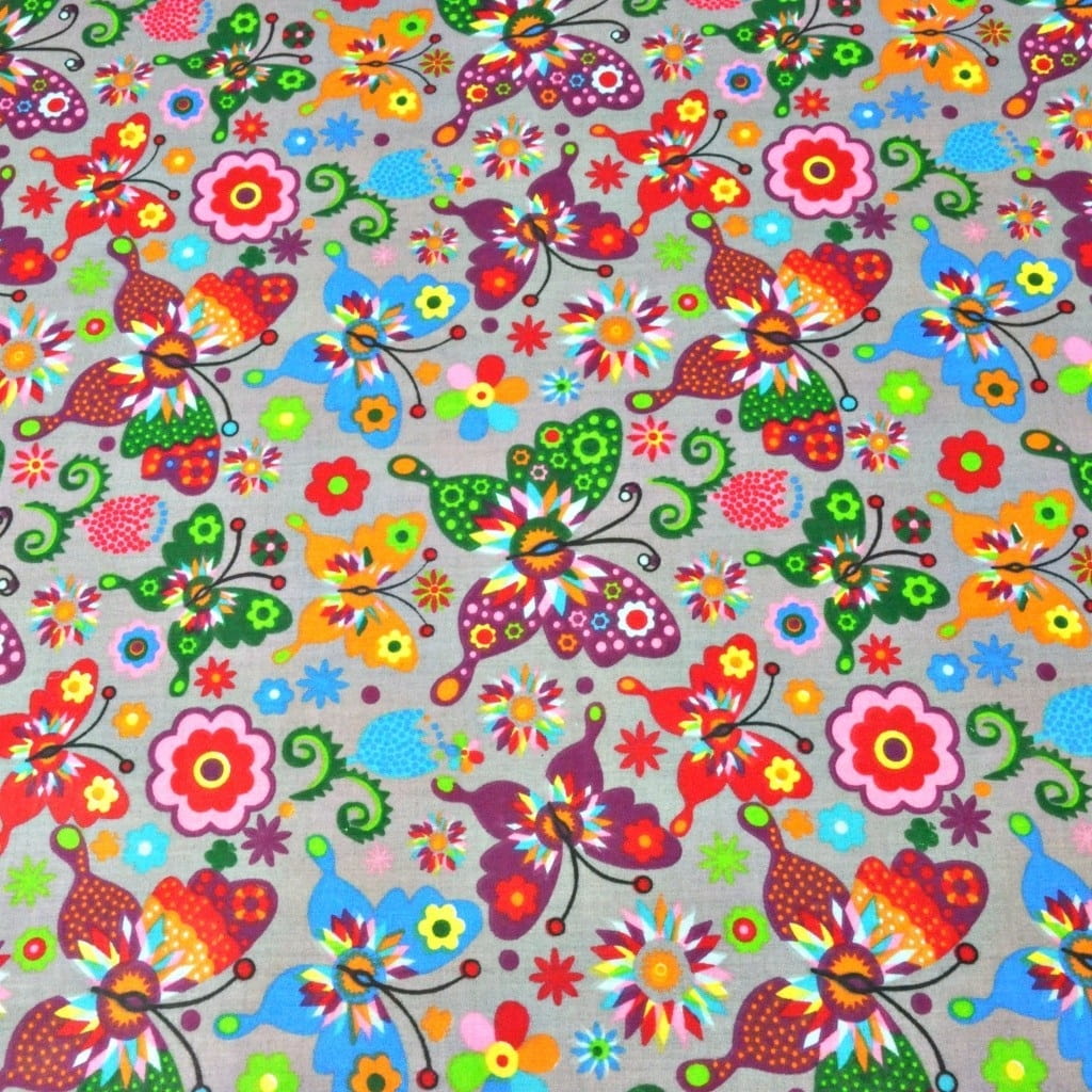 Tkanina bawełniana motylki łowickie na szarym tle
