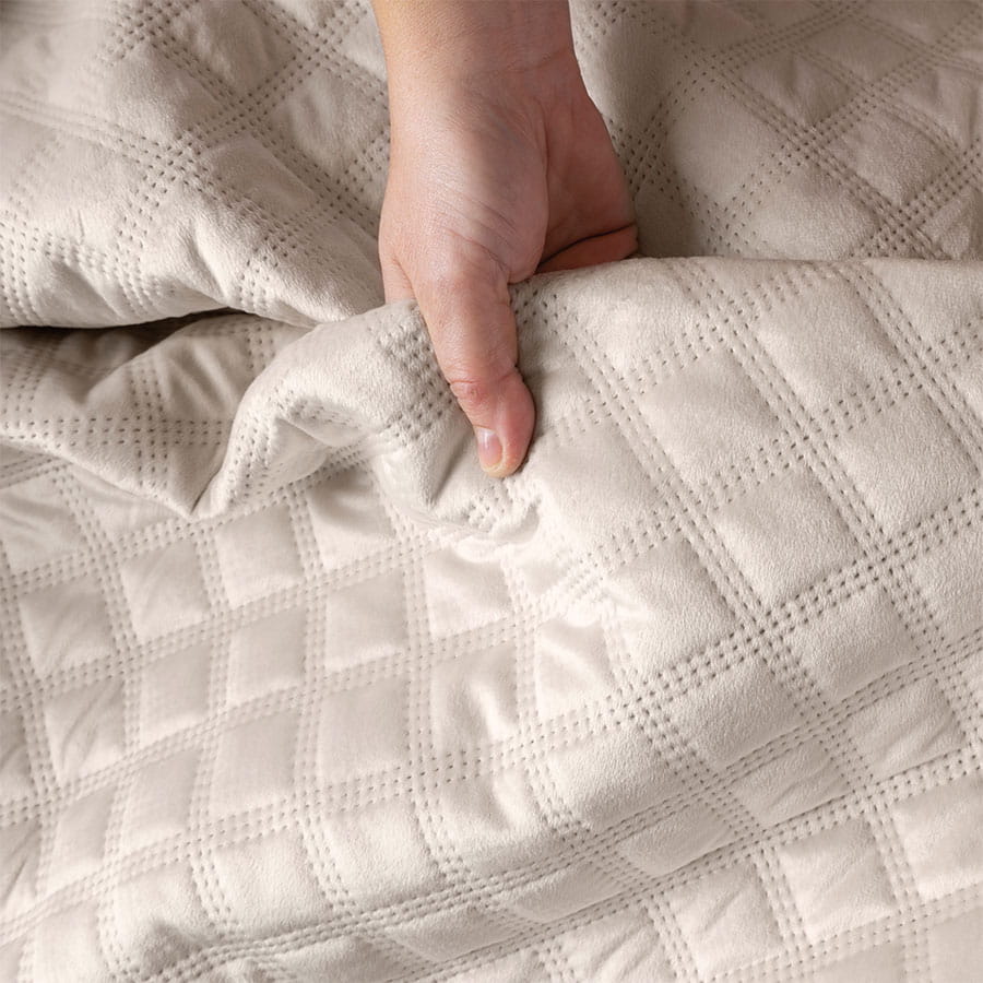 Narzuta dekoracyjna pikowana, wzór geometryczny, wykonany techniką hot press.