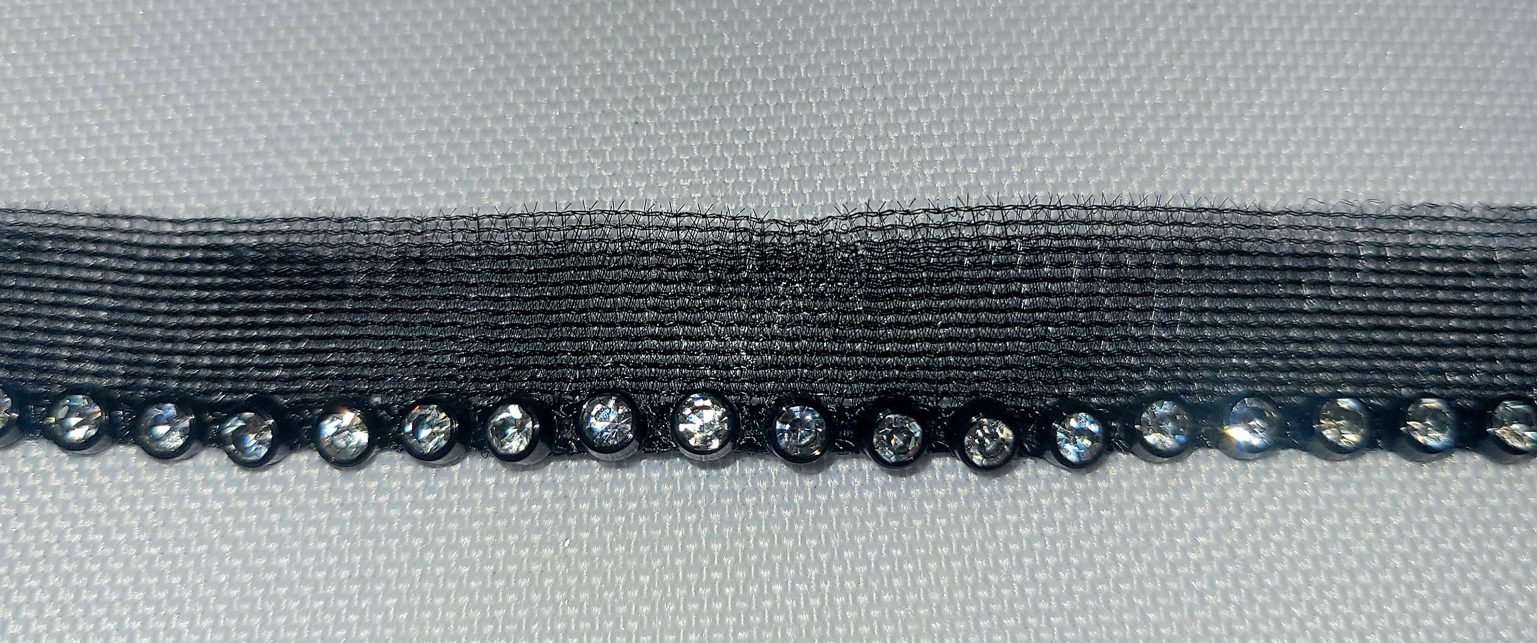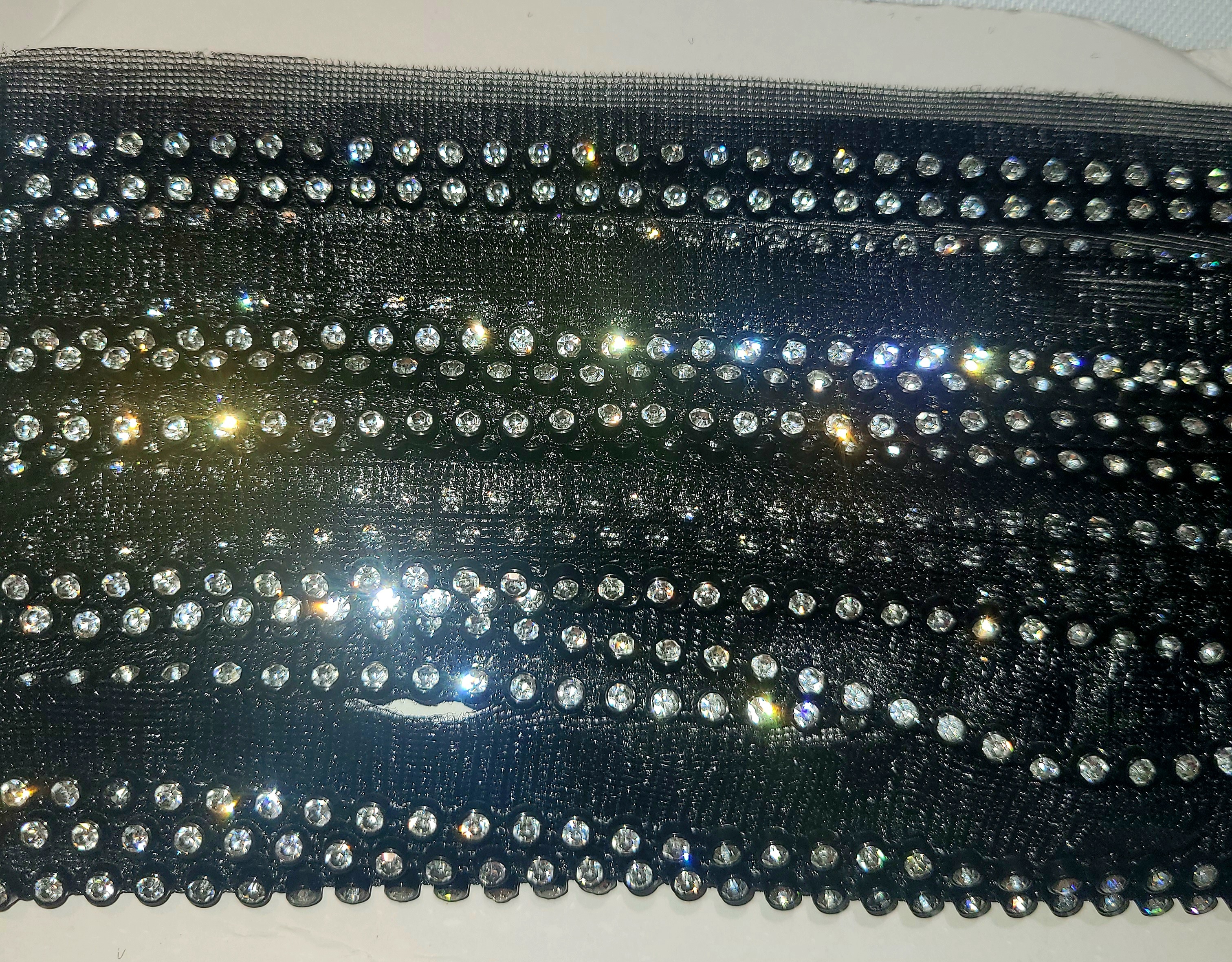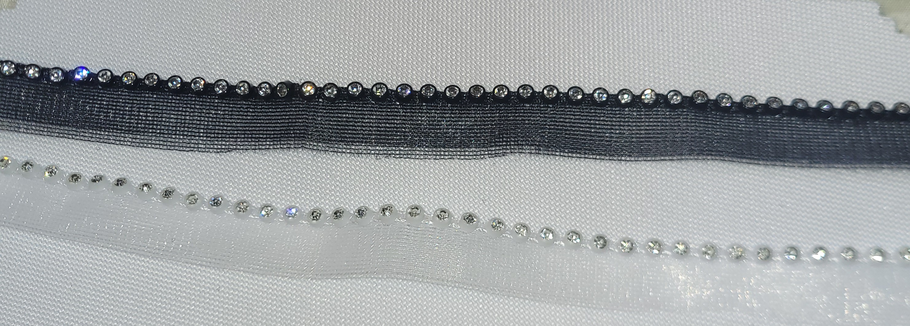 Taśma ozdobna z akrylowymi dżetami na wypustce.