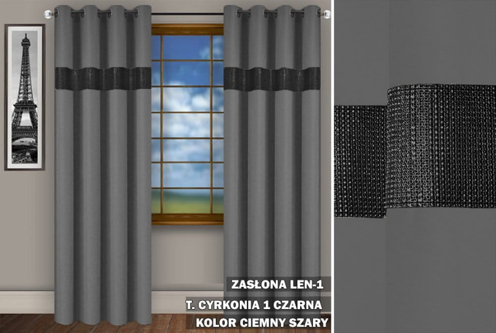 Zasłona CZ 230x145 cyrkonie na przelotkach ciemny szary