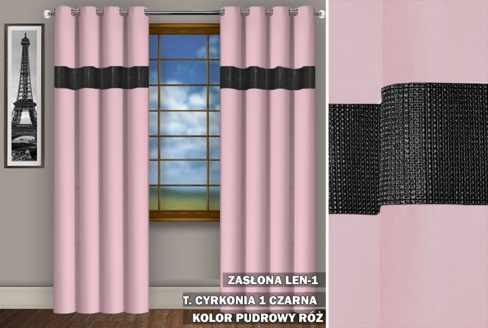 Zasłona CZ 250x145 cyrkonie na przelotkach pudrowy róż