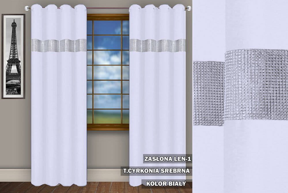 Zasłona SR 250x145 na przelotkach cyrkonie biały