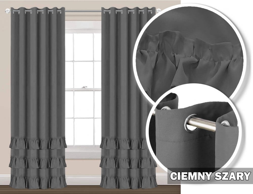 Zasłona na przelotkach 230x145 ciemny szary z falbankami