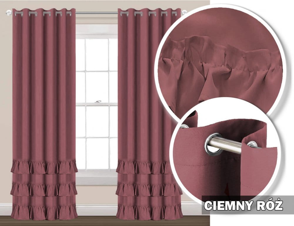 Zasłona na przelotkach 250x145 ciemny pudrowy róż z falbankami