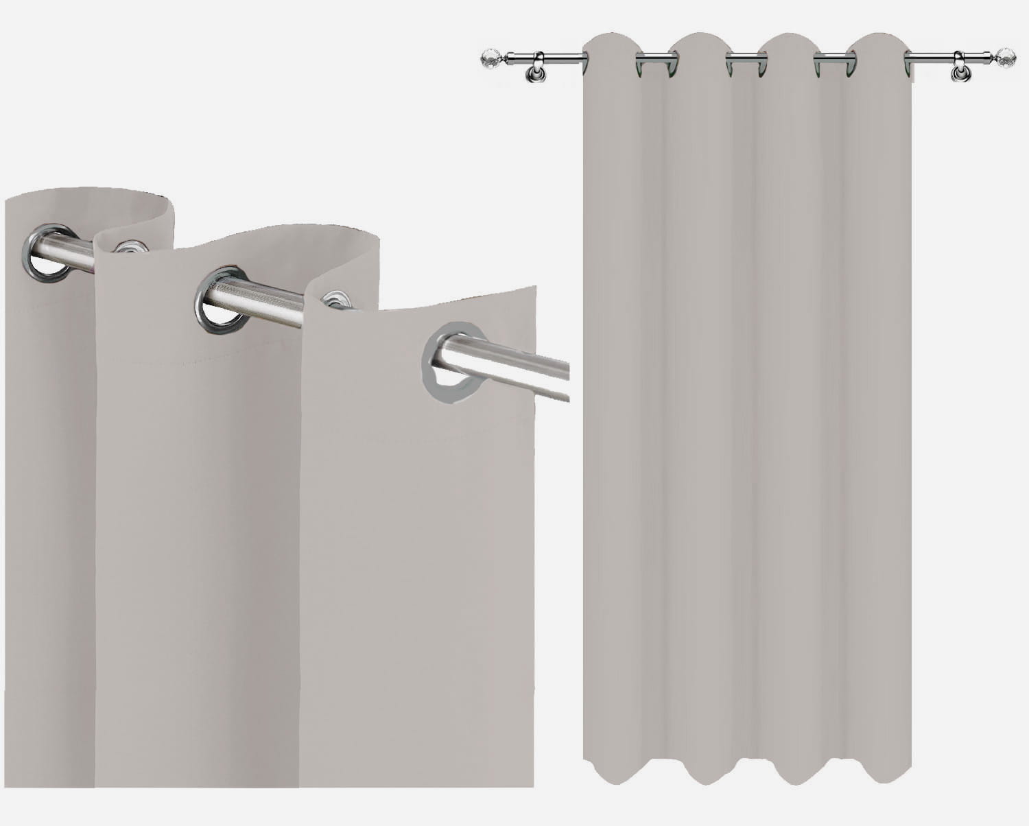 Zasłona u góry wykończona metalowymi przelotkami, brzegi obszyte.